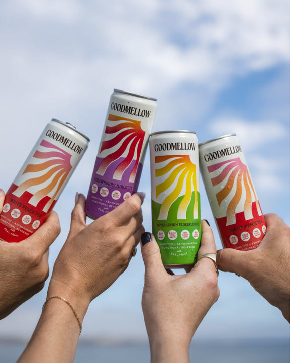 We’ve crafted Goodmellow with bold fruit flavors, botanical infusions and Adaptogens to elevate your every day. Light, bubbly, and delicious—because chilling out should taste amazing.