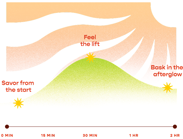 It always starts with flavor. Juicy fruit, bold pairings, lingering effervescence. You feel the effects of the THC in 10 to 15 minutes, leading up to the peak Goodmellow feeling: relaxed, bright, connected. After an hour or two, you return to where you started. Bask in the afterglow. It always starts with flavor. Juicy fruit, bold pairings, lingering effervescence. You feel the effects of the THC in 10 to 15 minutes, leading up to the peak Goodmellow feeling: relaxed, bright, connected. After an hour or two, you return to where you started. Bask in the afterglow.